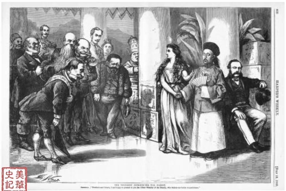这幅关于把中国介绍给文明国家的社论漫画,用一种尊重的态度把中国介绍给了哈珀周刊的读者们。当时美国流行一种是中国为异己的看法,而这幅社论漫画反驳了那种错误观念,纳斯特和哈珀周刊做出努力告诉美国人:尽管中国和美国不相同,其拥有的历史与传统应该得到认可,所以应该得到蒲安臣条约中规定的最惠国待遇。